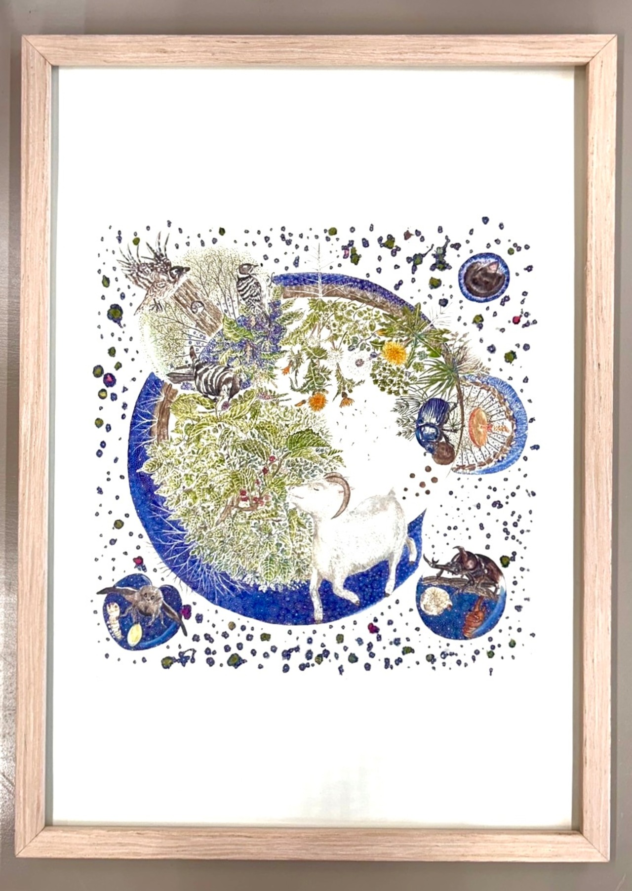 あずきちゃん自身が作り出す宇宙、それに絡んでくる者たちそれぞれの宇宙があり、干渉し、統合しながら世界は作られていく、あちこちでそんな統合された宇宙が展開されているイメージを描きました。
