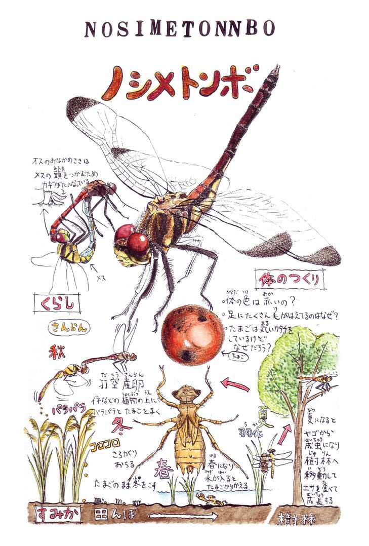 「体のつくり」「くらし(エサ、生殖)」「すみか」という生態学を簡単にした切り口で生きものを調べ、作者自身が感動したことを記録したものです。